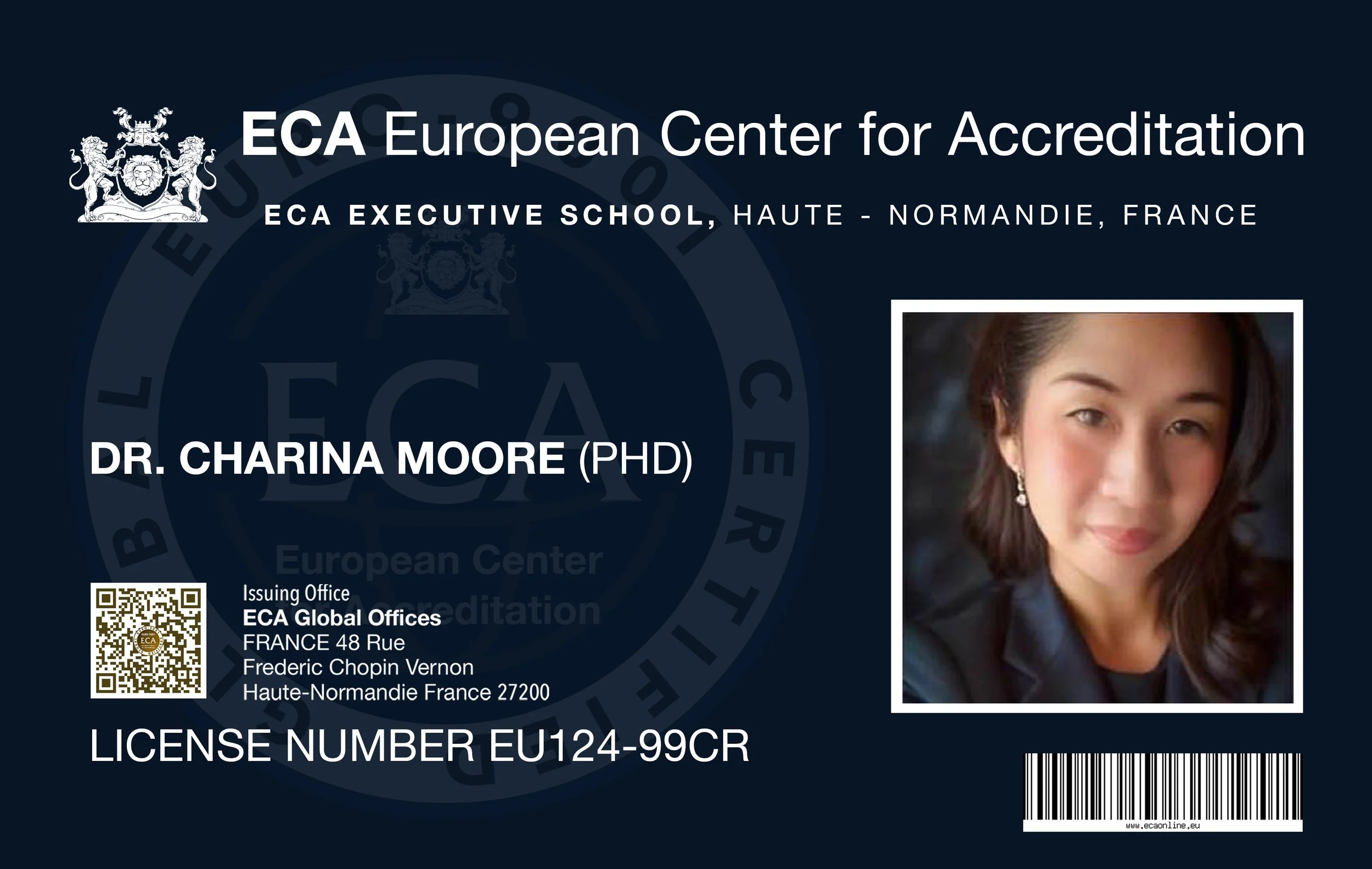 The data provided in this Academic Transcript was processed solely for the purpose of certifying the individual’s satisfactory doctorate certification from the European Center for Accreditation & ECA Executive School, in compliance with the EU General Data Protection Regulation (GDPR).