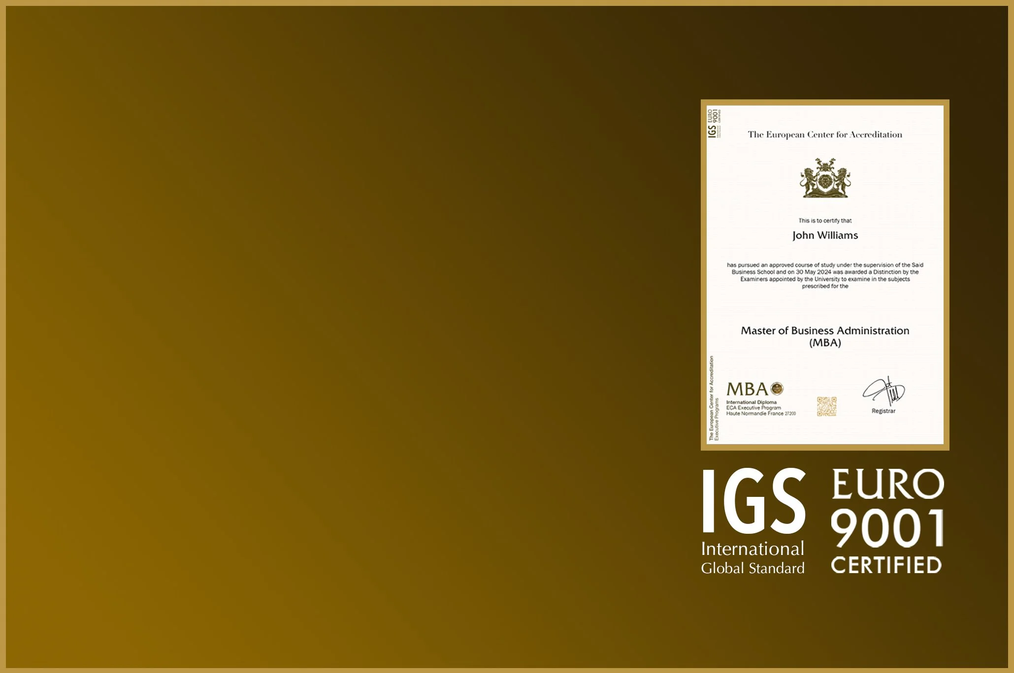 Important Note: All certificate images are for illustrative purposes only and may be subject to change at the discretion of the European Center for Accreditation (ECA) and the ECA Executive School. The duration of delivery of certificates is also subject to potential adjustments at the discretion of ECA. Learners are informed in cases of changes.