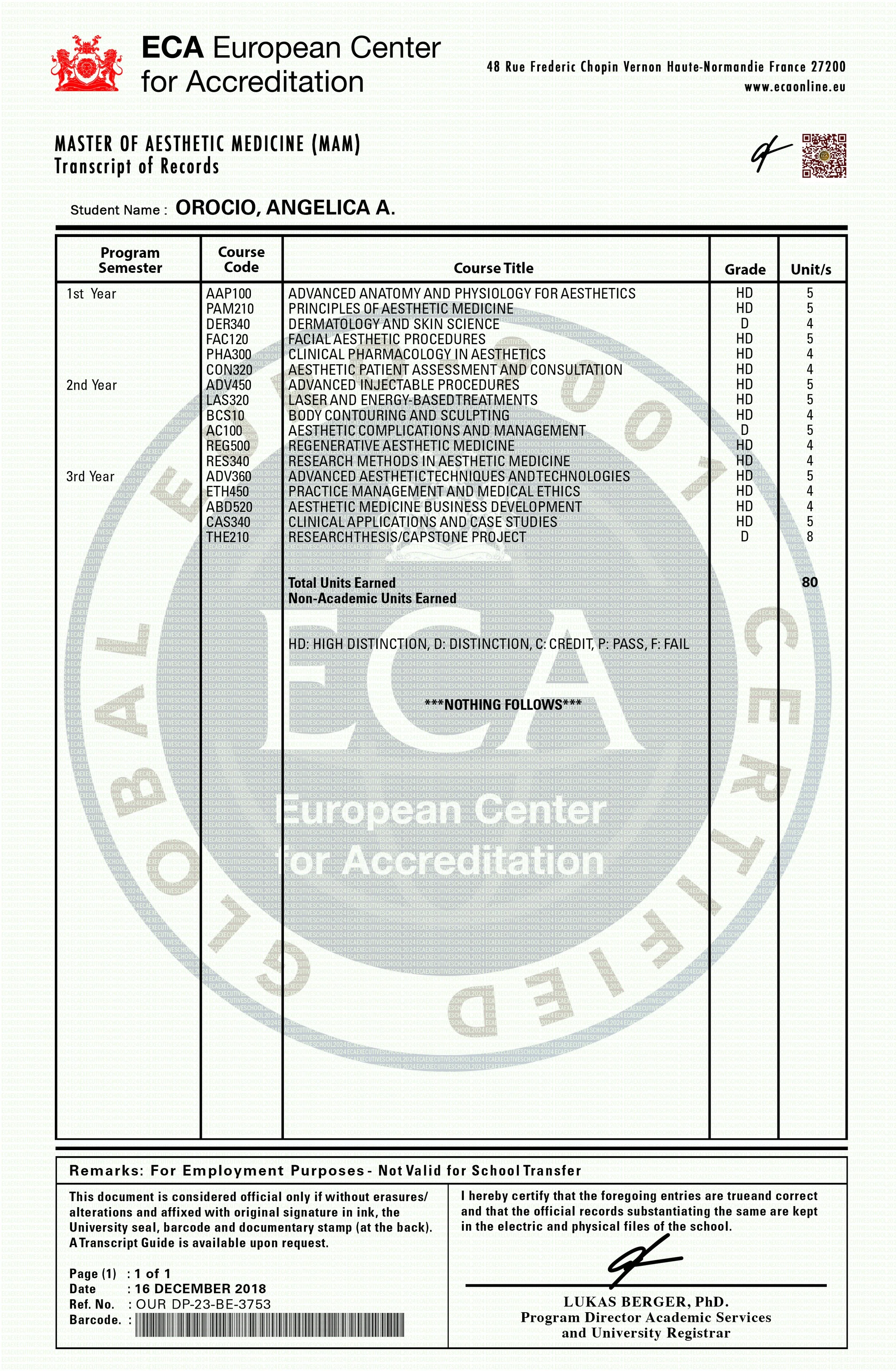 The data provided in this Academic Transcript was processed solely for the purpose of certifying the individual’s satisfactory masteral certification from the European Center for Accreditation & ECA Executive School, in compliance with the EU General Data Protection Regulation (GDPR).