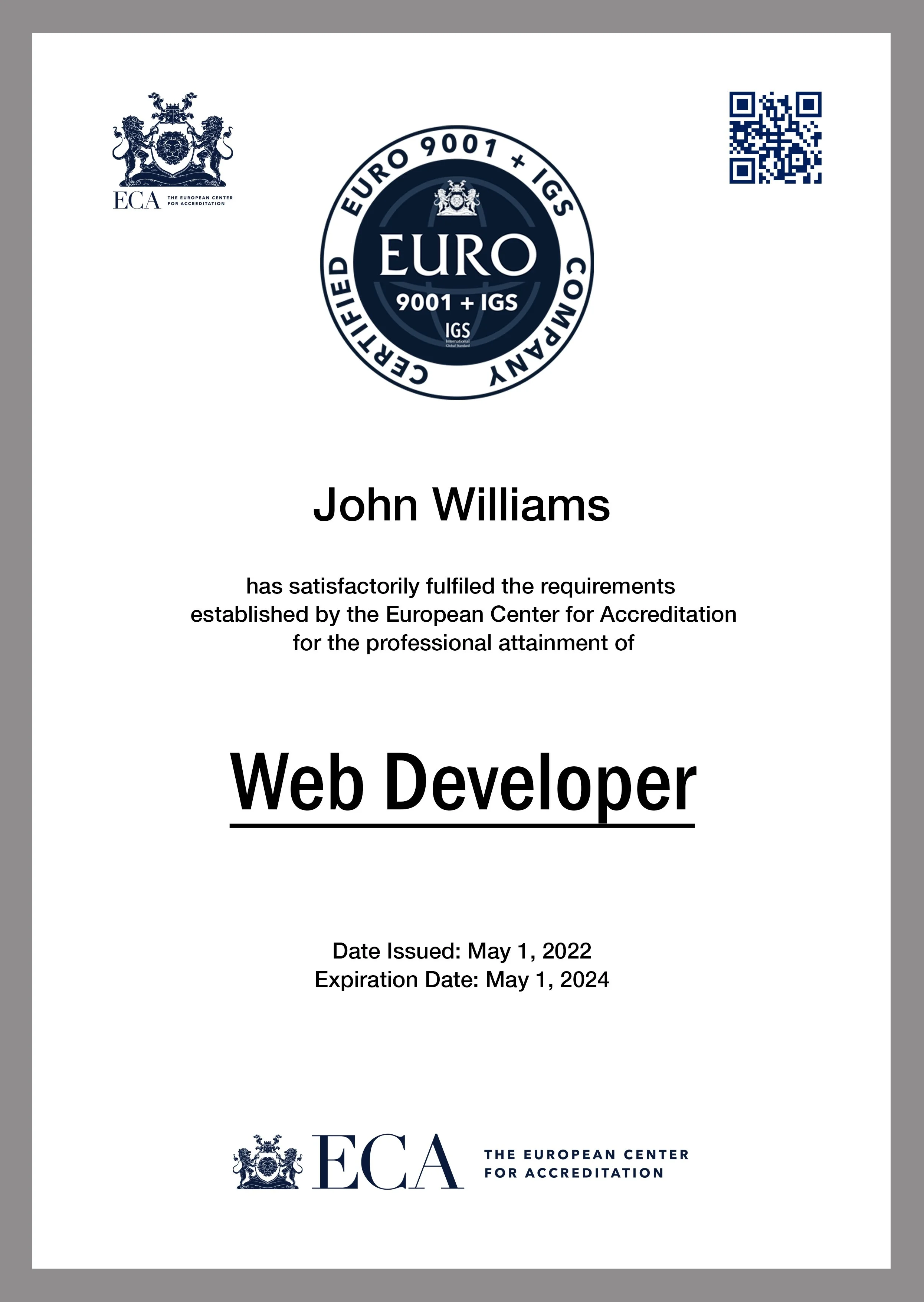 About the Certification À Propos Du Certification | The European Center for Accreditation (ECA) is the world’s leading provider of online accreditation and certification programs for businesses and key service institutions. ECA is also the Official Provider of the IGS International Global Standard and EURO Certifications to institutions worldwide.